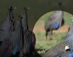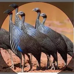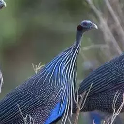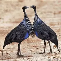 鹫珠鸡:是珠鸡科中体形最大的一种,因头颈部像兀鹫而得名。雌雄羽色相似,为黑色基底上遍布白色点斑,…