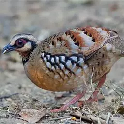 褐胸山鹧鸪:雄鸟体长22厘米,体重310克;雌鸟体长23厘米,体重220-275克。前额皮黄白色,…