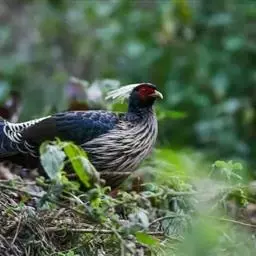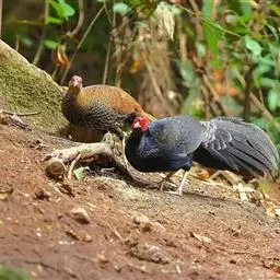 黑长尾雉大型鸡类,体长53~88厘米。雄较雌大。雄鸟通体紫蓝色,脸鲜红色,翅上有一条显著的白色翅斑…