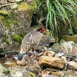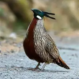 白颈长尾雉:大型鸡类,体长81厘米,体型大小和雉鸡相似。雄鸟头灰褐色,颈白色,脸鲜红色,其上后缘有…