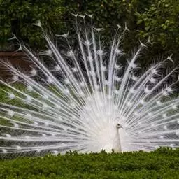 白孔雀,脊椎动物,鸟纲,雉科。其全身洁白无瑕,羽毛无杂色,…