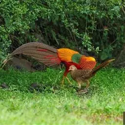 黄腹角雉:是鸟纲、雉科中国特产的一种鸟类。体长约50-65厘米。雄鸟上体栗褐色,…