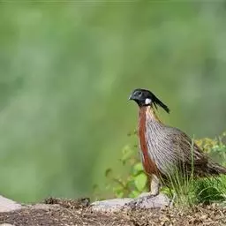 红腹角雉属于鸡形目雉科,雄鸟体羽及两翅主要为深栗红色,满布具黑缘的灰色眼状斑,下体灰斑大而色浅。雌…