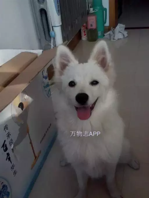 祖先是德国的狐狸犬,从脸部、毛色和蓬松的尾巴可以认出是狐狸犬的一种。尖尖的嘴部和竖立的耳朵很像狐狸,毛长而厚,具有被水弄湿后快干的特征,尾巴梳理成羽毛状,但身体健壮,肌肉发达,背部宽阔。纯白色是最受喜爱的颜色,有时会掺杂奶黄色或淡褐色的斑纹。耳朵竖立,尾巴卷曲,像北极狼一般的脸。