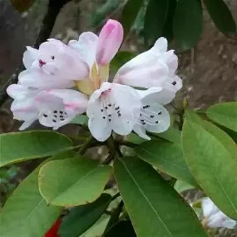 问客杜鹃:灌木,高1-3米。幼枝细长,密被腺体状鳞片。叶革质,椭圆形,卵状披针形或长圆形,上面被鳞…