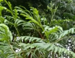 杉木 乔木,高达30m,胸径可达2.5~3m;幼树树冠尖塔形,大树树冠圆锥形,树皮灰褐色,裂成长条片脱落,内皮淡红色;大枝平展,小枝近对生或轮生,常成二列状,幼枝绿色,光滑无毛;冬芽近圆形,有小型叶状的芽鳞,花芽圆球形、较大。