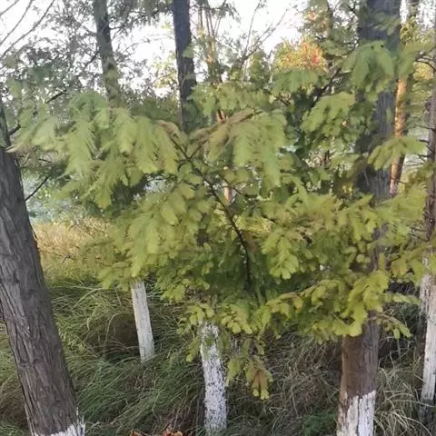 落羽杉 Rich.),杉科落羽杉属木本植物。树干尖削度大,基部通常膨大,具膝状呼吸根,树皮棕色,…