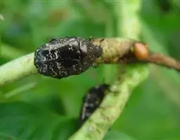 雌虫体长31—52毫米,宽13—20毫米。长椭圆形,褐色至黑色,头大但明显狭于前胸,头额中有对丘突。鞘翅可见纵肋4条。 [5-6]