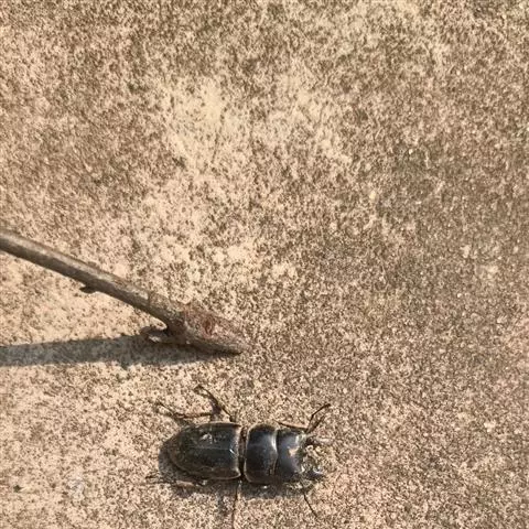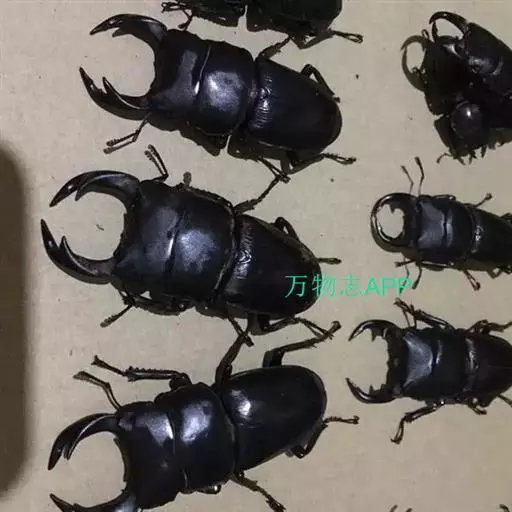 中国大锹,鞘翅目锹甲科刀锹属昆虫,雄虫体长多为40—-75毫米,宽15—30毫米。体扁宽,长椭圆形,前胸背板中点最宽,四缘有边框,前缘波形。全体黑色,背面不被毛,光泽中等。