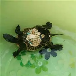 水霉病:冬季不见阳光或水质不良引起真菌寄生到龟体上,有时秋季、春季也发生。此病发生时,龟脖子四周及四肢甚至有时甲壳上也可见到白色丝状的粘物。水霉病对大龟影响不大,但对小龟可能引起死亡,可用0.1克/升的孔雀石绿溶液浸洗病龟15分钟,也可用食盐水浸洗病龟。