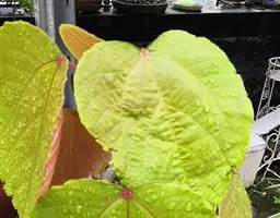 常绿小灌木。株高约50~120厘米,枝条暗红色 。叶互生,圆形或阔卵形,全缘。白色或有白色斑纹。嫩…
