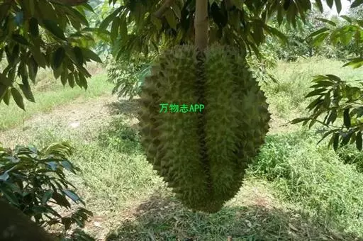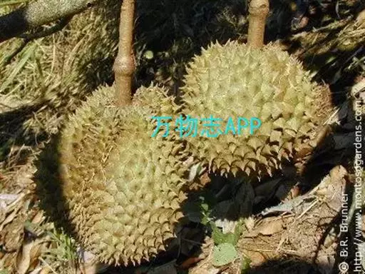榴莲 常绿乔木,高可达25米,幼枝顶部有鳞片。托叶长1.5-2厘米,叶片长圆形,有时倒卵状长圆形,短渐尖或急渐尖,基部圆形或钝,两面发亮,上面光滑,背面有贴生鳞片,侧脉10-12对,长10-15厘米,宽3-5厘米;叶柄长1.5-2.8厘米,聚伞花序细长下垂,簇生于茎上或大枝上,每序有花3-30朵;花蕾球形;花梗被鳞片,长2-4厘米。