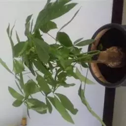 瓜栗 Walp. ),俗称发财树,木棉科小乔木,高4-5米,树冠较松散,幼枝栗褐色,无毛。小叶具…