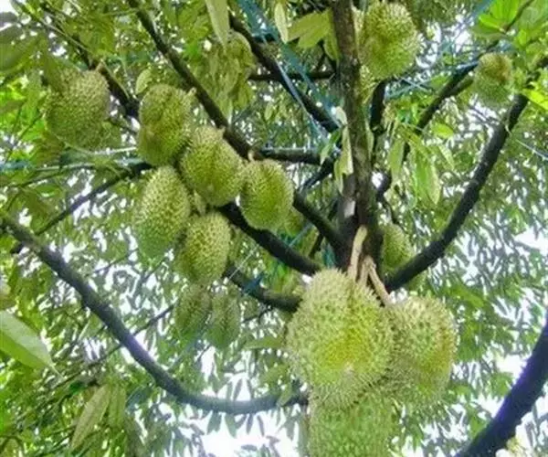 榴莲 泰国榴莲有二百个品种,但普遍种植的有六十至八十种。其中最著名的有三种:轻型种:伊銮、胶伦通、春富诗、金枕和差尼,四、五年后结果;中型种:长柄和谷,六至八年结果;重型种:甘邦和伊纳,八年结果。它们每年结果一次,成熟时间先后相差一、二个月。