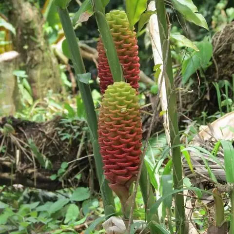珊瑚姜是姜科、姜属植物。株高近1米。叶片长圆状披针形或披针形,长20-30厘米,宽4-6厘米,…