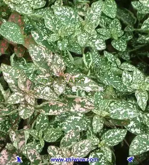常绿多年生草本;株高可达30-60厘米,但盆栽种多控制在10-15厘米以内,冠幅15-20厘米,质地较细腻。枝条生长后略呈蔓性,茎节处易生根。叶对生,呈卵形或长卯形叶全缘,叶面呈橄榄绿,上面布满红色、粉红色或白色斑点。叶腋易生短枝。春季能开花,花小,为淡紫色小型穗状花。 嫣红蔓