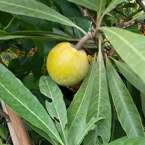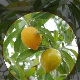 蛋黄果 Baehni),山榄科桃榄属小乔木。枝被褐色,短绒毛;叶窄椭圆形,先端渐尖;花生于叶腋,…