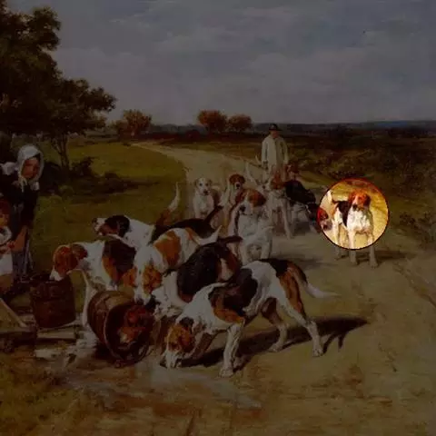 形态特征 头部清爽,而且头部线条分明,宽阔的头顶使脑袋看起来颇大。耳朵适度垂挂在头部两侧,略靠后。眼睛大小适中,颜色多为棕色、黄色或黑色,神态十分善解人意。颈部长度适中,不太突出。肋骨扩展良好,两肩较长稍具斜度。胸部厚实宽度和深度良好。前脚自肩膀以下至地面挺直,趾头密实拱起。后脚踝适度弯曲,四肢长度适中,与身体各部位均衡配合 。
