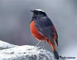 雌性成鸟头、颈和胸纯为橄榄褐色;腹部为比雄鸟略淡的红色;翼上的白色虫蠹状纹转为淡棕色。