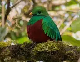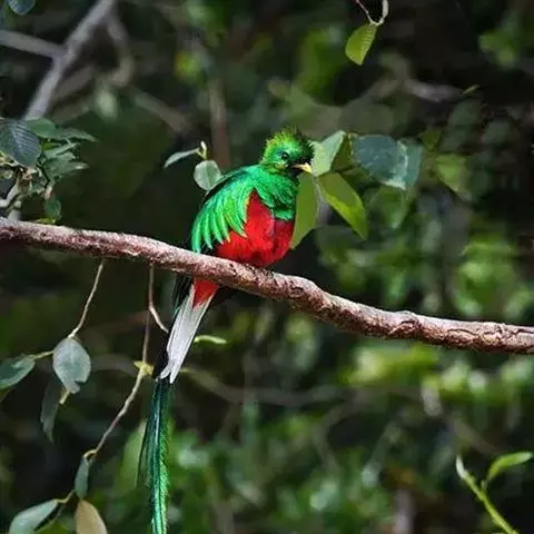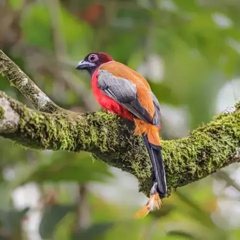 橙胸咬鹃:全长约28厘米。雄鸟头、颈橄榄绿色,上体及中央尾羽栗色;中央尾羽具黑色端,…