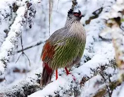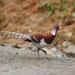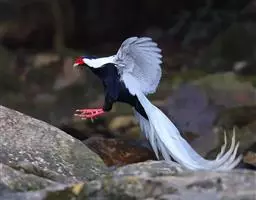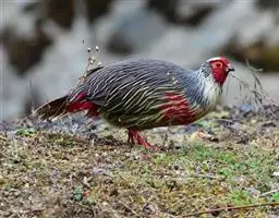 白颈长尾雉:大型鸡类,体长81厘米,体型大小和雉鸡相似。雄鸟头灰褐色,颈白色,脸鲜红色,其上后缘有…