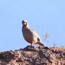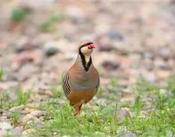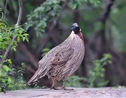 体大的灰褐色鹑类。胸灰色具黑色细纹。与相似种类四川雉鹑不同处在于栗色喉块外缘近白。有猩红色眼周裸皮。…