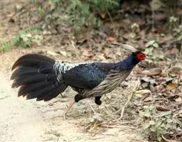 黑长尾雉大型鸡类,体长53~88厘米。雄较雌大。雄鸟通体紫蓝色,脸鲜红色,翅上有一条显著的白色翅斑…