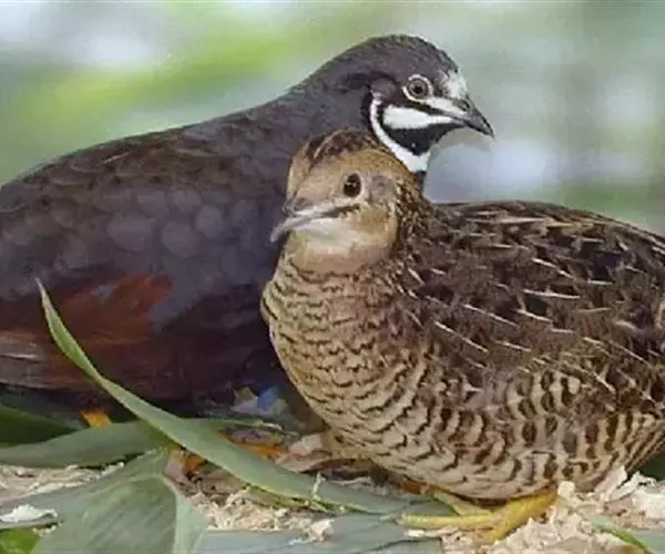 雌鸟:羽色与鹌鹑近似。头顶黑褐色,但范围窄,羽缘黄褐;头顶中央贯以浅黄色纵纹。上背暗棕褐色,具白色羽干纹,羽端具黑斑;下背、肩、腰和尾上覆羽均黑褐色,杂以浅棕褐色横斑,并具宽阔的浅黄色羽干纹。翅上内侧覆羽大都棕褐,杂以黑色横斑,外侧覆羽和飞羽暗褐无斑,最外侧初级飞羽狭缘以白色。头和颈的内侧黄褐;颏及喉的上部白色,杂以黄褐色,喉的下部浅黄褐色;胸部和两胁黄褐色,具黑褐色细横斑,这与鹌鹑具黑褐色纵纹的情况显然有别。腹淡黄色;围肛羽白色微黄,羽基暗灰褐色;尾下覆羽黄褐色,具黑褐色横斑。