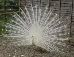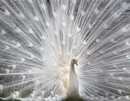 白孔雀,脊椎动物,鸟纲,雉科。其全身洁白无瑕,羽毛无杂色,…
