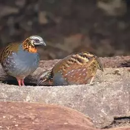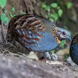 蓝胸鹑(学名:Synoicus chinensis):是雉科蓝胸鹑属的鸟类,体形小于普通鹌鹑,全长12厘米,体重35-48克。在羽色上,雌雄差异很大;雄鸟羽色十分鲜明显耀,喉部中央具一大型黑斑,围以白色;胸部蓝色;腰部至尾下覆羽栗紫色;雌鸟羽色与普通鹌鹑近似。