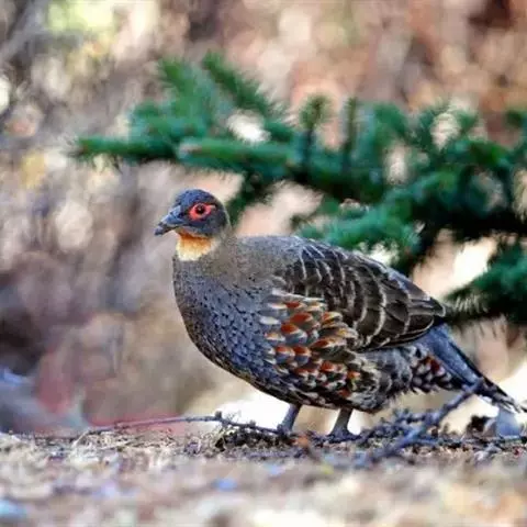 黄腹角雉:是鸟纲、雉科中国特产的一种鸟类。体长约50-65厘米。雄鸟上体栗褐色,…