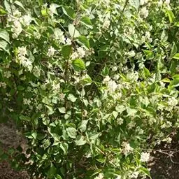 灌木,高1.5-3.5米;二年生小枝灰褐色,表皮呈片状脱落,当年生小枝浅褐色或紫红色,被微柔毛或有时无毛。叶卵形或阔卵形,长6-12.5厘米,宽8-10厘米,先端急尖,基部圆形,花枝上叶较小,卵形、椭圆形至卵状披针形,长4-8.5厘米,宽3.5-6厘米,先端渐尖,基部阔楔形或近圆形,边缘具疏锯齿,上面被刚毛,下面密被白色长粗毛,叶脉离基出3-5条;叶柄长5-10毫米。