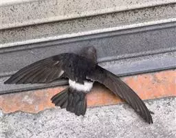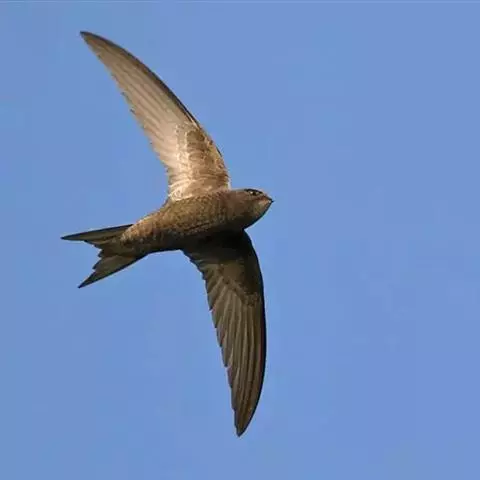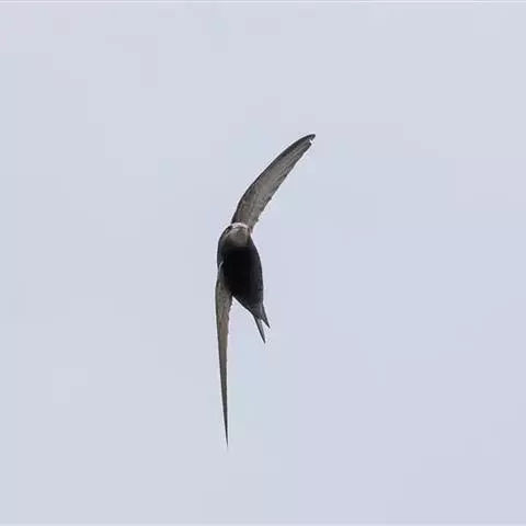 普通楼燕(学名:Apus apus):是一种体长21厘米的雨燕。尾略叉开,特征为白色的喉及胸部为一道深褐色的横带所隔开。两翼相当宽。虹膜褐色;嘴黑色;脚黑色。振翅频率相对较慢。白天常成群在空中飞翔捕食。尤以晨昏、阴天和雨前最为活跃。飞翔疾速,时速可达110千米。