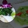 主要用料:韭菜四两切段,黄喉(黄喉,行内就叫做牛心顶,是牛的喉管。口感比较爽脆,多用于火锅或者凉拌。)、胡萝卜各三两切丝,盐适量,淀粉一大匙加两大匙和适量味精、水调成芡汁。