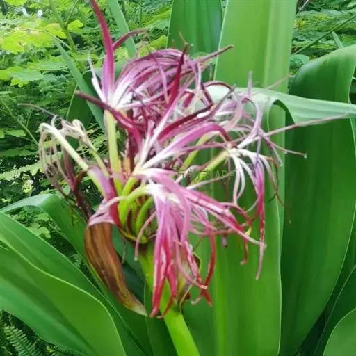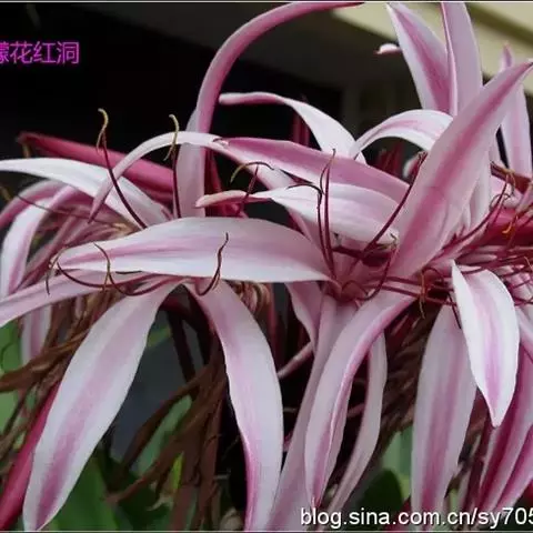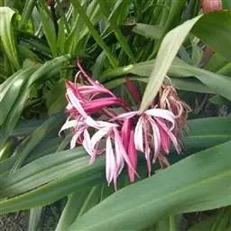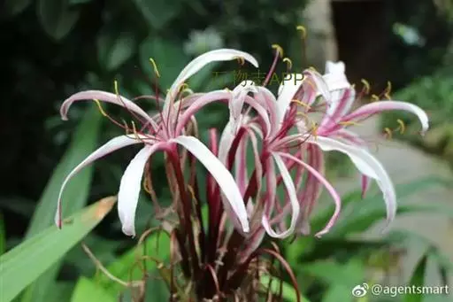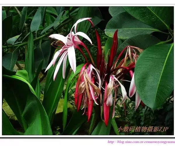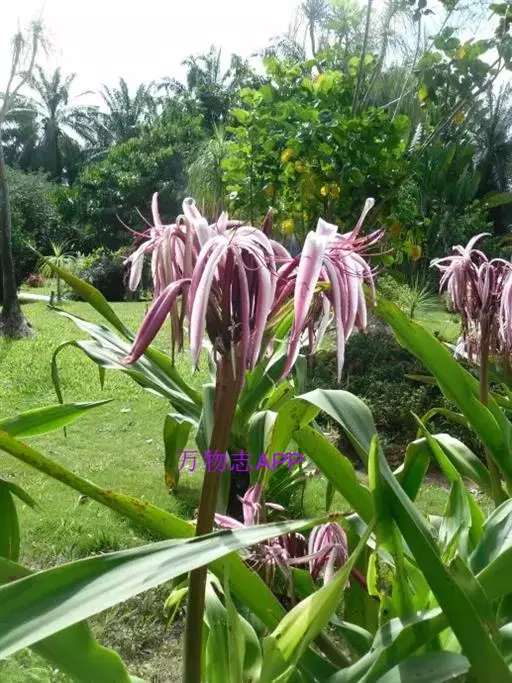 红花文殊兰又名西南文殊兰,拉丁文名Crinum latifolium L.多年生粗壮草本。分布于广西、贵州、云南。常生于河床、沙地。越南至印度及马来西亚也有分布。