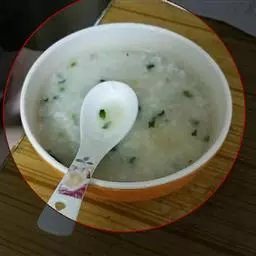原料:大米150克,皮蛋2个,猪瘦肉225克,生姜少许,香菜1棵(根据个人喜好)。