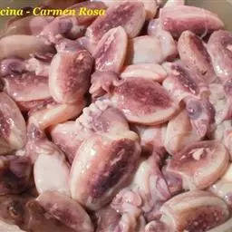 3.瘦肉浸泡出血水后,再冲洗干净,切成肉丝,放入盐适量、鸡精1/4勺、料酒、淀粉,抓拌均匀后腌制10分钟