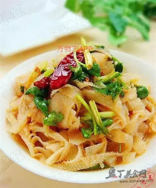 待其冷却后切成普通面条状,调入新泼油的辣椒,香醋,盐水,也可放入新切的生黄瓜丝,其味更加爽口。