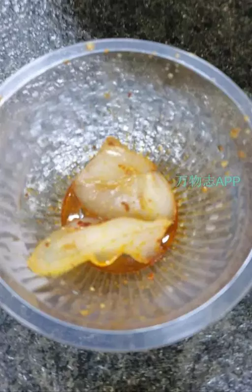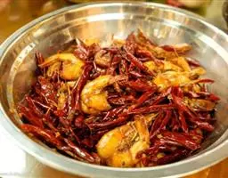 7配作料:将三奈,八角、香果、桂皮、花椒,研成极细的粉末,配成调料面。用旺火烧十成热,离火,待油温降至五成热时,加入辣椒面、调料面加热到十成后关火静置到不冒油烟时,分成三次倒入辣子罐油泼辣子面,每次都要搅动均匀以免油泼不均匀,有的地方糊了,有的地方没泼到还是生的。即成调料辣椒油。同时把精盐化成盐水。