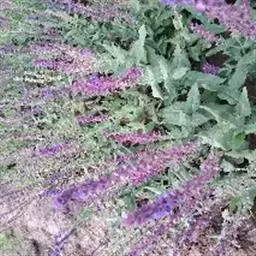 蓝花鼠尾草多年生草本,高度30-60cm,植株呈丛生状,植株被柔毛。茎为四角柱状,且有毛,下部略木质化,呈亚低木状。