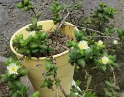 白凤菊(Oscularia pedunculata),别名姬鹿角,番杏科、覆盆花属,原产地位于南非及美国部分沿海地区。喜温暖干燥和阳光充足的环境,耐旱,怕水湿,无明显休眠期。多年生肉质植物,大株植物呈亚灌木状,茎分枝匍匐或直立,老枝茎干呈棕红色,嫩枝稍带浅红色或黄绿色,叶着生于茎节处,肉质多汁具三棱形,边缘有小锯齿,花顶生头状花序,花瓣、花丝呈淡紫色,花药呈黄色,花期春末夏。可通过分株或扦插繁殖。