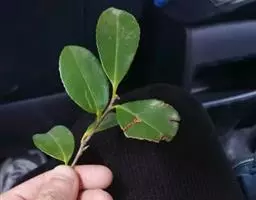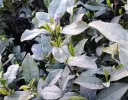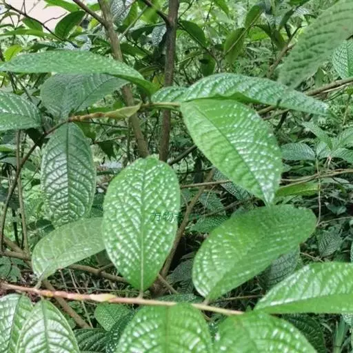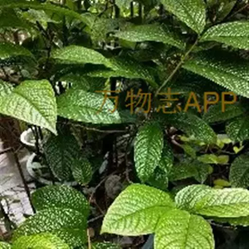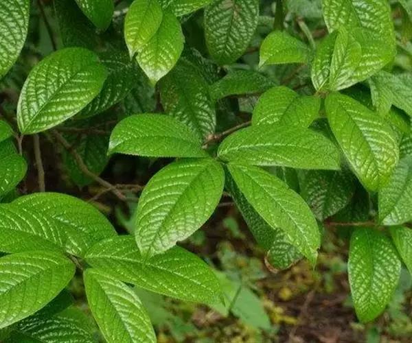 灌木,高3米,嫩枝有短粗毛,老枝变秃。叶革质,椭圆形,长12-22厘米,宽5.5-8.5厘米,先端急尖,基部阔楔形或窄而圆,上面深绿色,干后橄榄绿色,有光泽,下面黄褐色,被柔毛,至少在中脉及侧脉上有毛,有黑腺点,侧脉10-14对,与中脉在上面凹下,在下面强烈突起,边缘有细锯齿,齿刻相隔2-3毫米,叶柄长1厘米,上面有沟,无毛,下面有毛。