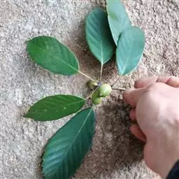 坚果卵形或椭圆形,直径1.5-2厘米,高1.7-2.2厘米,顶端圆形,果脐突起。花期3-4月,果期当年9-10月。