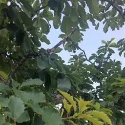 栎褐天社蛾:栎褐天社蛾又叫栎毛虫、红头虫,是栎类树木的食叶害虫,可用90%敌百虫或80%敌敌畏乳剂或25%亚胺硫磷乳剂均为1500倍液喷杀。 栗实象鼻虫:防治方法:①温水浸种:将种子放进55℃温水中浸泡10分钟,或在50℃温水中浸泡15分钟,杀虫率很高,且不影响种子发芽,浸种后经2天阴干后才能贮藏。②成虫盛发期可用90%敌百虫1000倍液喷杀。③幼虫未爬出栎实前,收集并清除早期脱落的栎实。