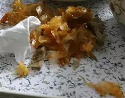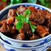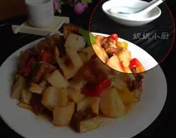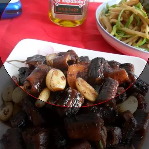 原料:南瓜1 个,五花猪肉400 克,黄酒、酱油、红糖、老汤、葱、姜、花椒粉、食用油、味精适量。