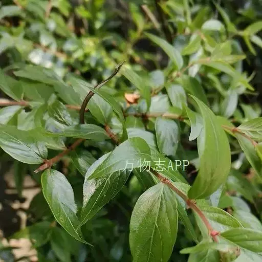 落叶小灌木。高1至3米。茎多分枝,枝细长,小枝红褐色,具白色皮孔和细柔毛,后渐平滑无毛。 顶芽不明显,被开展的托叶包裹。 单叶对生,近无柄,叶片纸质,卵状披针形或卵状椭圆形,长3至4厘米,宽1至2厘米,上面近无毛,或仅在中脉上具疏短毛,下面沿脉及脉腋间具疏毛,羽状脉。侧脉5至6对,纤细,在叶下面凸出,叶先端渐尖,基部模形或圆形,全缘或微波状, 被稀疏或稠密短柔毛, 干后边缘反卷。托叶2深裂,按针形,长约2毫米,外翻, 小,早落。