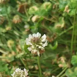 白车轴草,豆科车轴草属的多年生草本植物,茎贴地匍匐;叶柄直立,小叶心形,边缘具细齿,叶脉明显,…