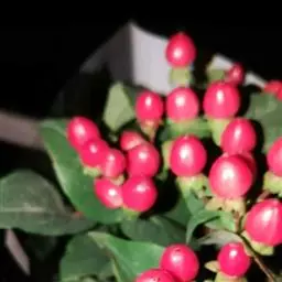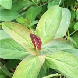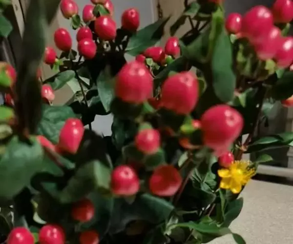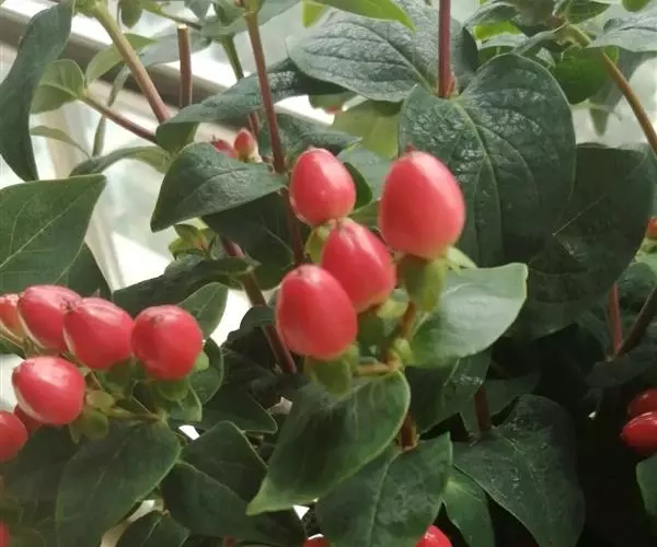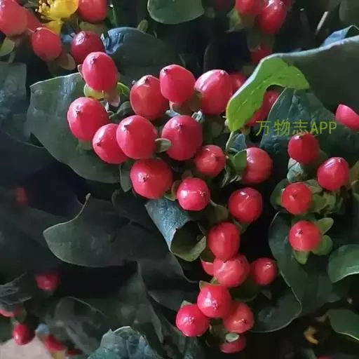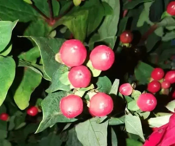 红果金丝桃,园艺栽培品种 ,属于被子植物门双子叶植物纲山茶目藤黄科金丝桃属。学名:Hypericum × inodorum ‘Excellent Flair’