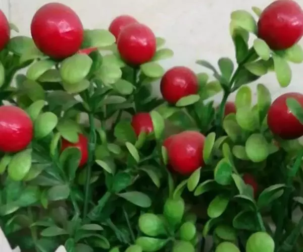 常绿小灌木,株高60厘米左右,茎红色,花期6~8月,花金黄色,观果期9~12月,果红色。