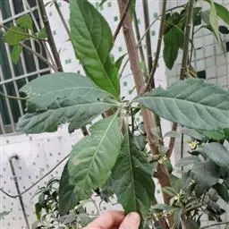 根茎不明显,有多数细长的棕色须根。茎表面黄绿色或黄棕色,有纵条纹,上部多分枝;质较硬,易折断,断面类白色,髓白色、疏松。叶多皱缩或脱落,完整叶片卵状椭圆形或长椭圆形,长10-15cm,宽5-8cm,先端尖或钝,基部狭成具翅的短柄,边缘有不规则锯齿或全缘,上面有贴生短毛,下面有短柔毛或腺点;质脆易碎。头状花序多数,腋生,花序梗极短;花黄色。气特异,味淡微辛。以叶多、香气浓者为佳。